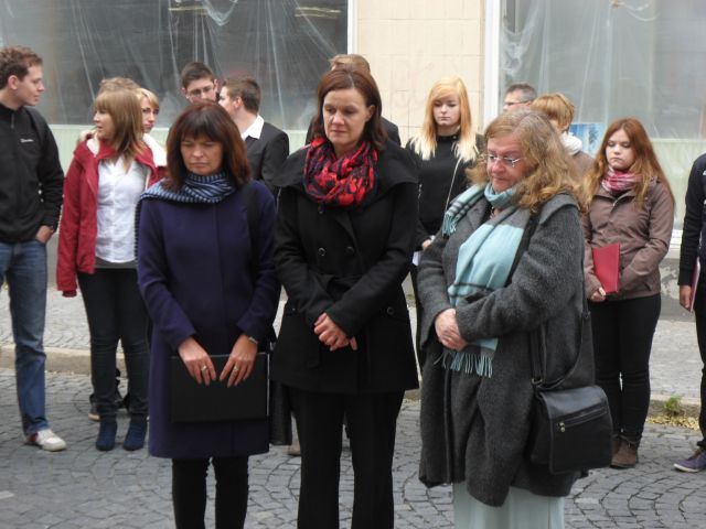 Dorothea Marx (links) bei der Verlegung der Stolpersteine für die jüdische Familie Schoenlank „Die Würde des Menschen ist unantastbar“ – mit diesem Zitat aus dem Grundgesetz erinnert die Sondershäuser SPD-Landtagsabgeordnete Dorothea Marx an die Novemberpogrome von 1938, die sich am Samstag zum 75. Mal jähren.